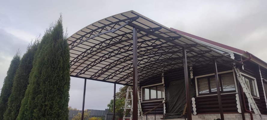 Стальной полуарочный навес-пристройка к дому (кровля из поликарбоната)